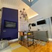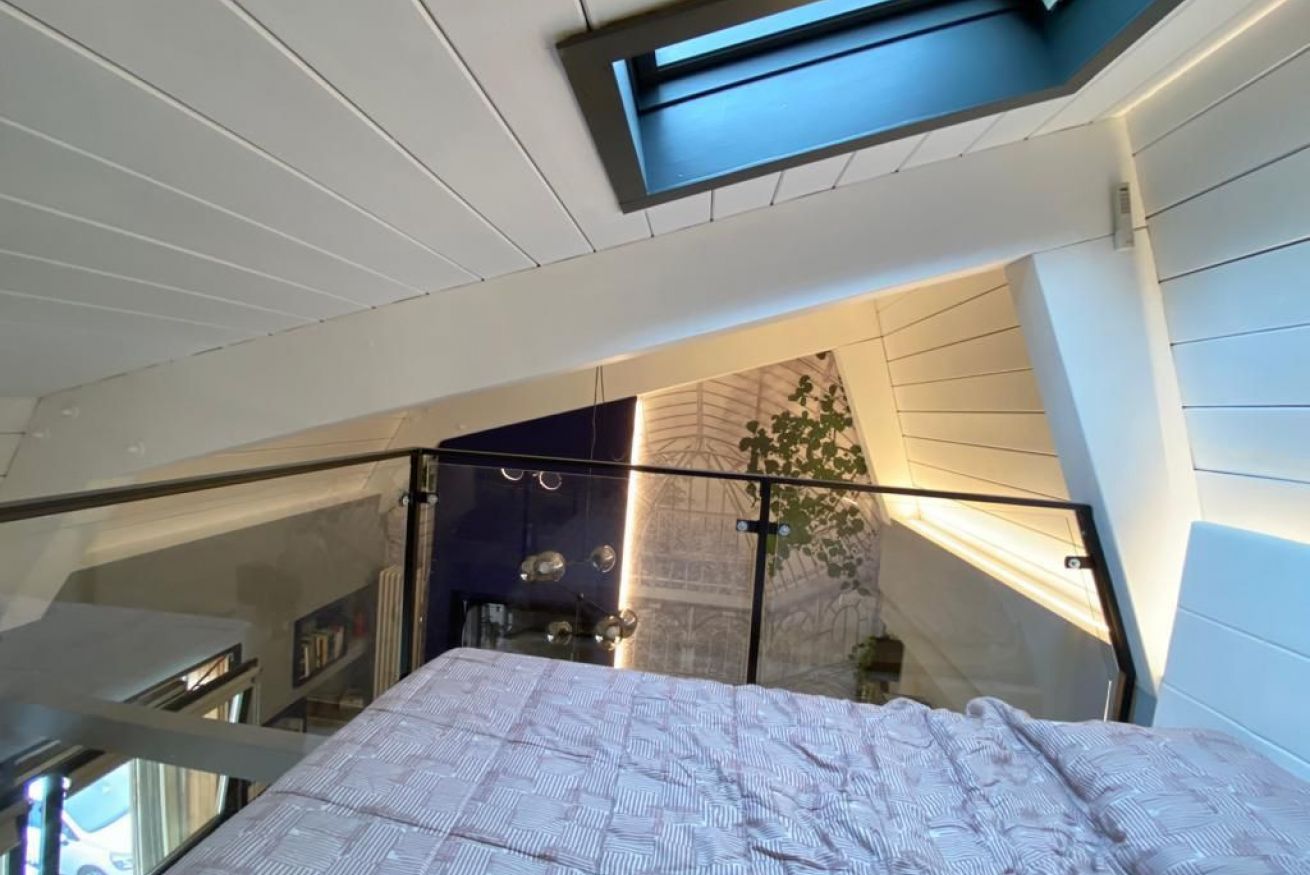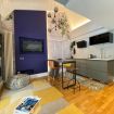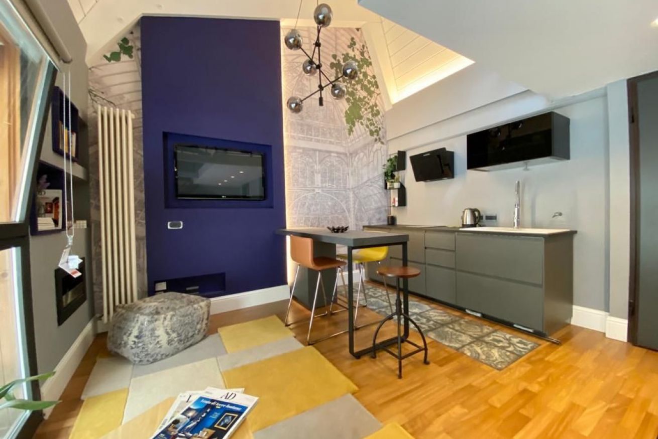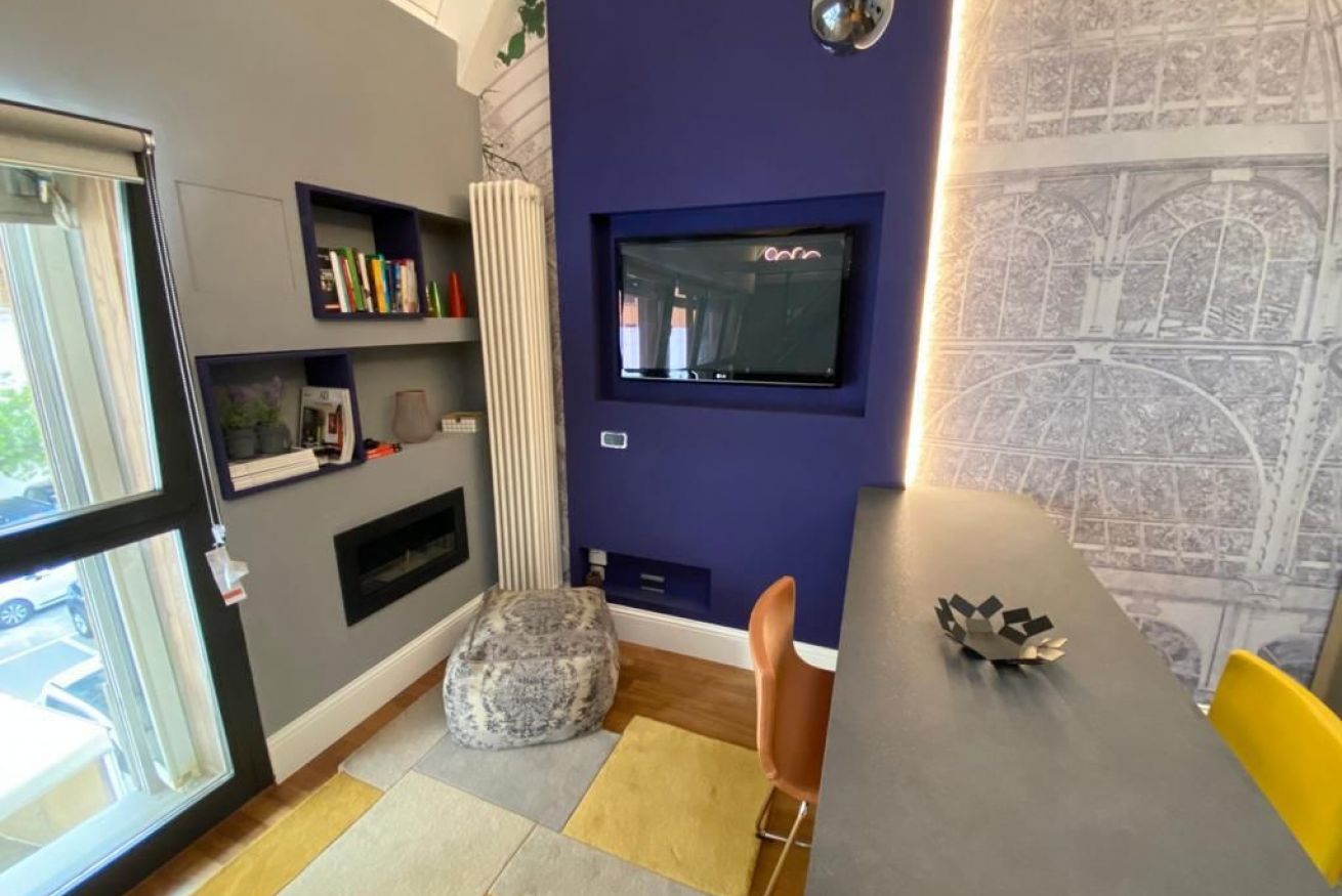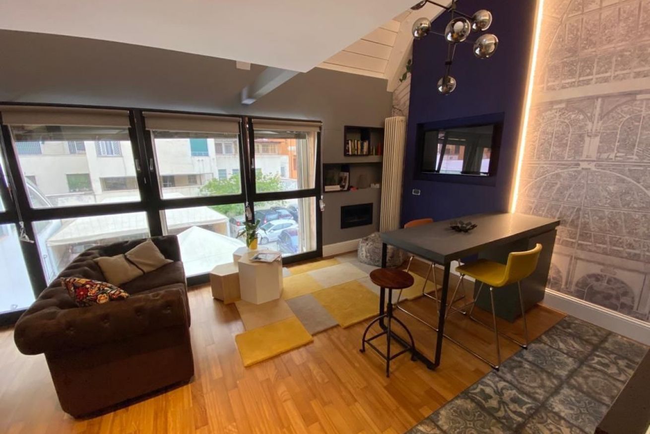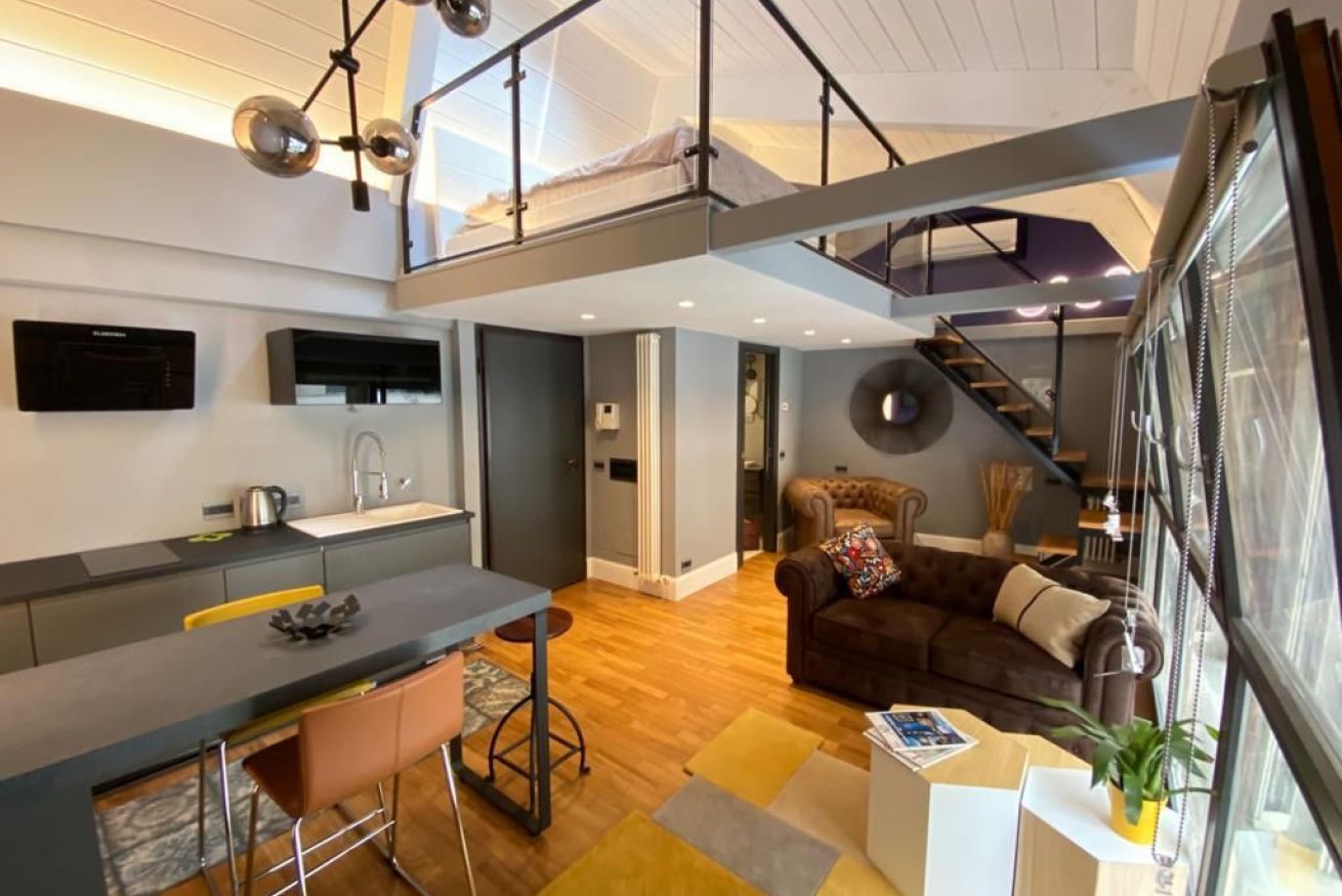 Luminoso Loft su due livelli nel centro di Bologna, finemente arredato con oggetti di Design e recentemente ristrutturato. Situato al secondo piano senza ascensore di un interno silenzioso, a soli 9 minuti a piedi dalla Stazione e 15 da Piazza Maggiore. È cosi' composto: entrata su soggiorno con caminetto a bioetanolo, cucina a vista e bagno con doccia. Una comoda scala conduce alla zona notte. La posizione è ideale per visitare la cittá attraverso le suggestive strade del centro storico.