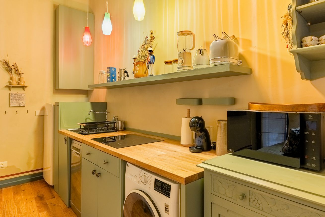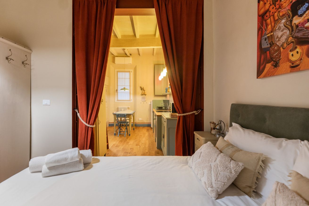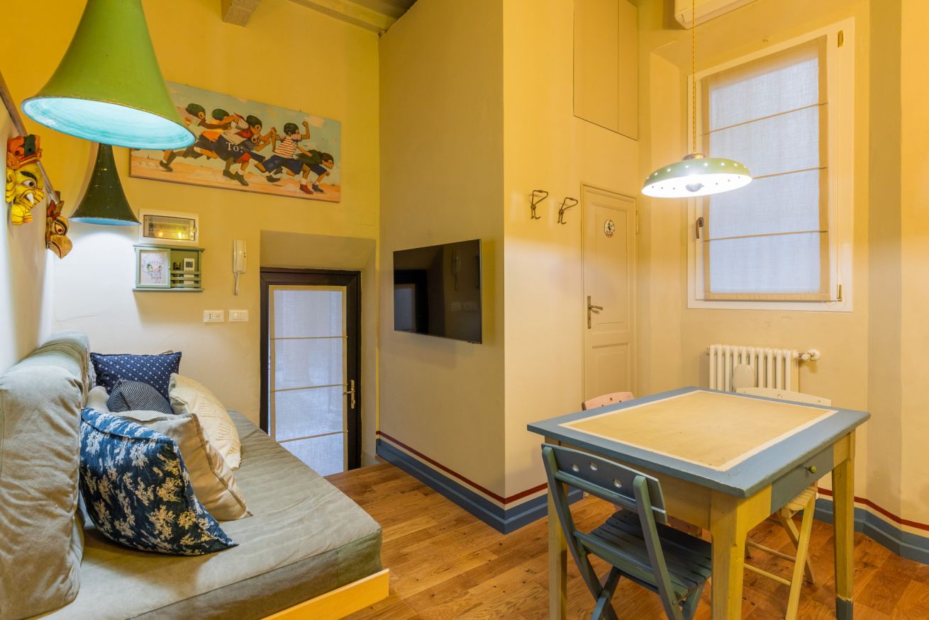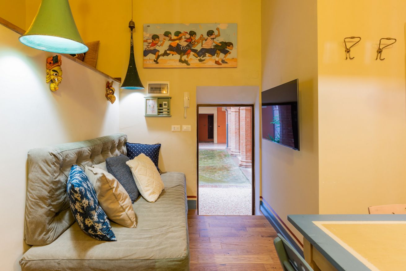 Delizioso appartamento appena ristrutturato e finemente arredato con un accurata ricerca di materiali e oggetti. Si trova nel cuore di Bologna, a soli 8 minuti a piedi dalle Due Torri. E' un luogo felice dove tornare e passare dei momenti rilassanti in armonia dopo una lunga giornata di visite ed esperienze enogastronomiche. SI trova al piano terra di un palazzo tipico bolognese, entrata su soggiorno e cucina a vista, bagno con doccia e camera da letto con letto matrimoniale e poltrona letto.