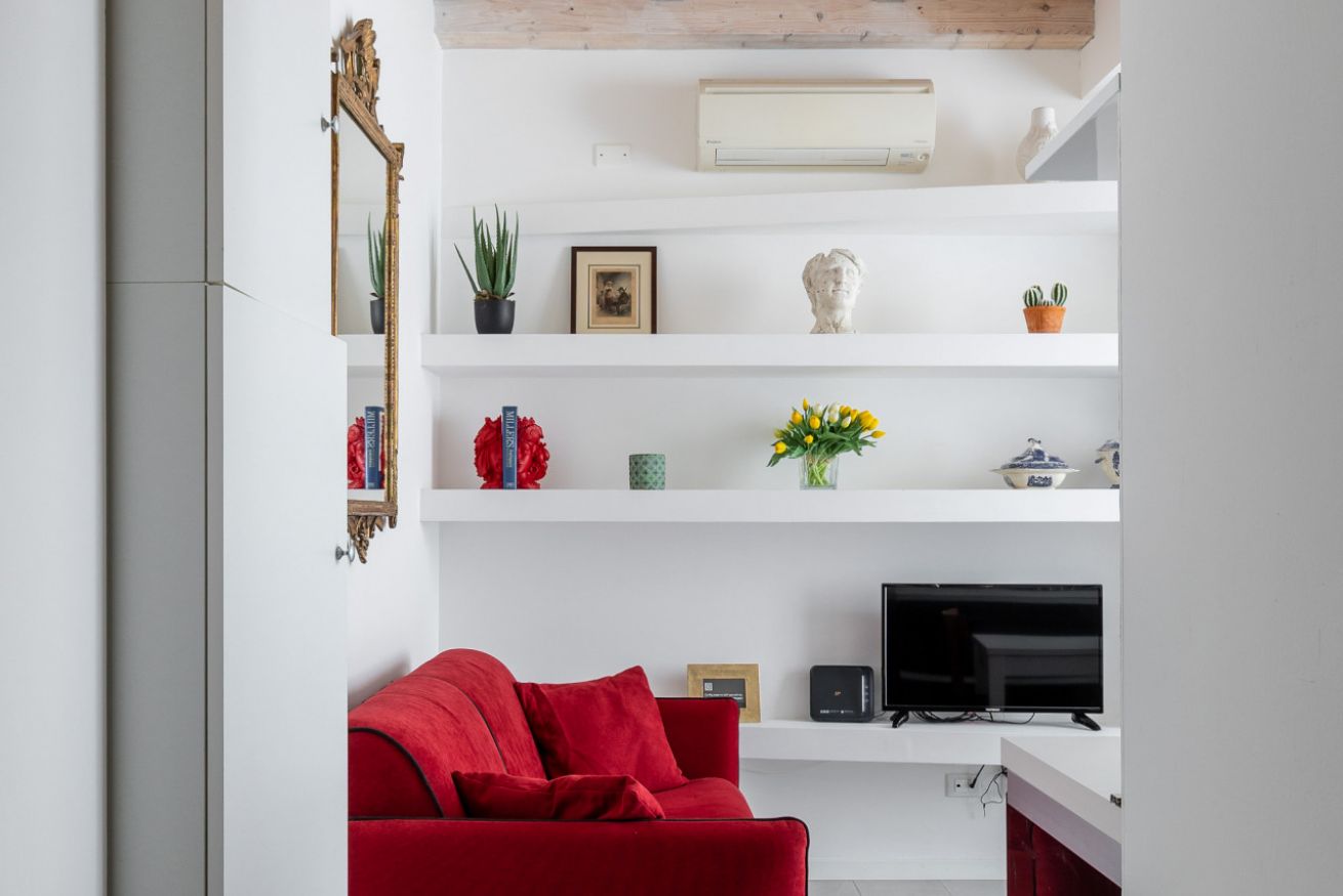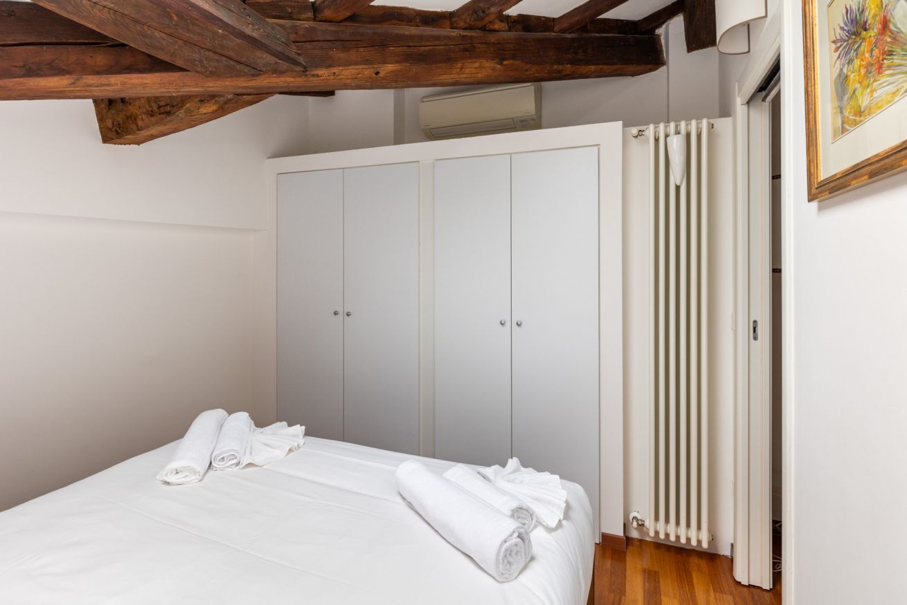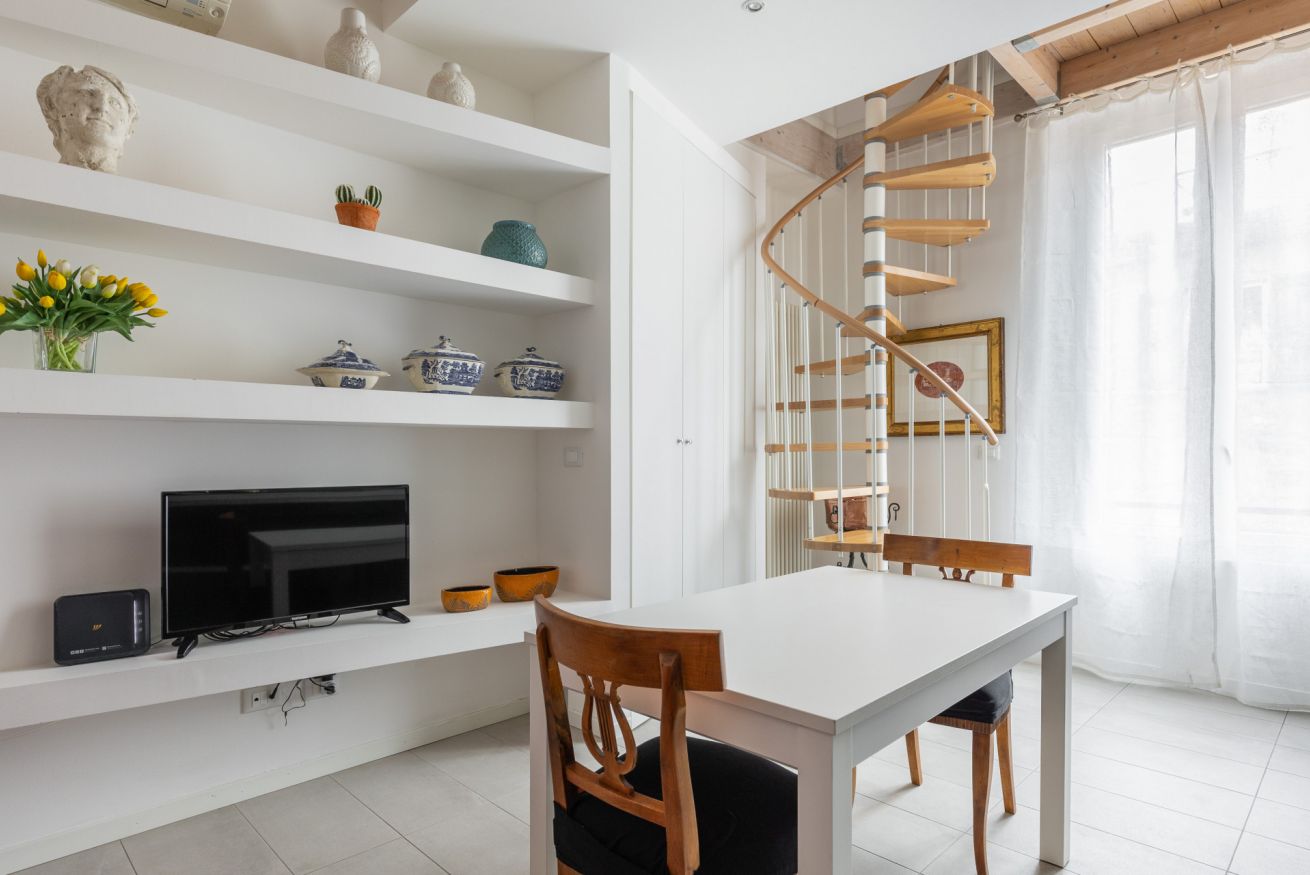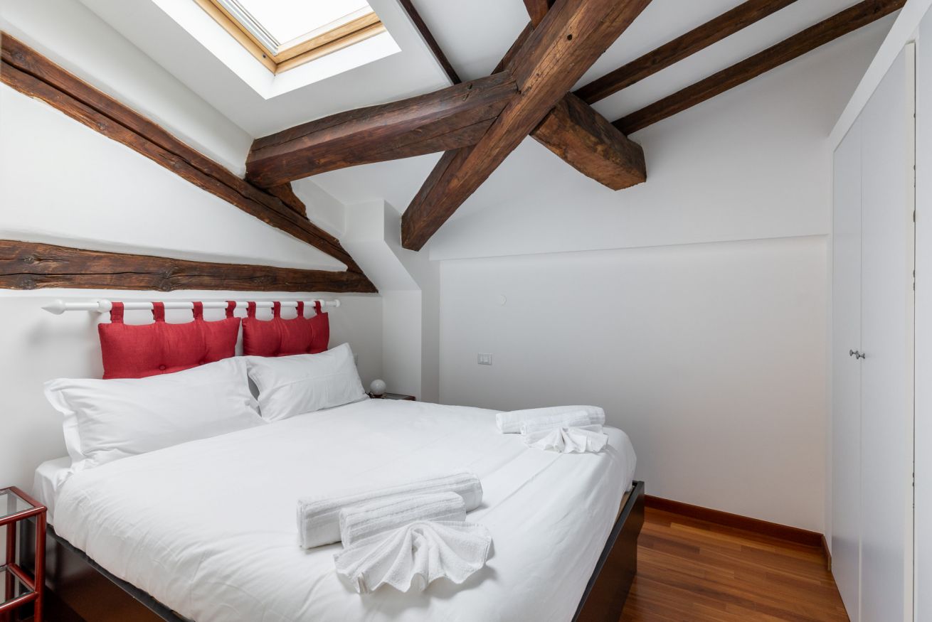 Elegante nido sui tetti di Bologna con affaccio sul Canale delle Moline nel cuore della Piccola Venezia. Secondo piano senza ascensore, super silenzioso e luminoso. E' cosi' disposto: entrata su soggiorno con cucina a vista, dotata di tutti gli utensili per poter cucinare, scala a chiocciola che porta al piano superiore. Camera da letto matrimonialie con travi a vista e bagno con doccia. Dotato di aria condizionata e fibra Wifi. Un ottimo punto di partenza per visitare e godersi la città!