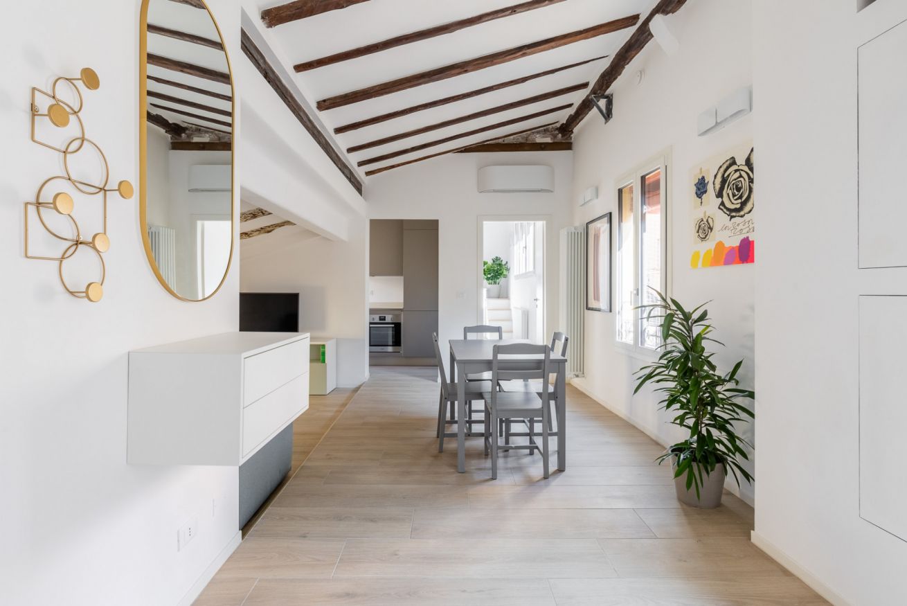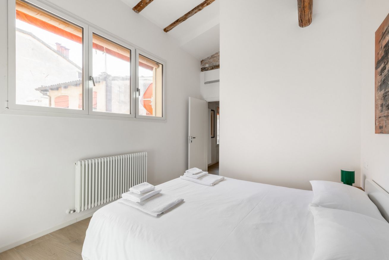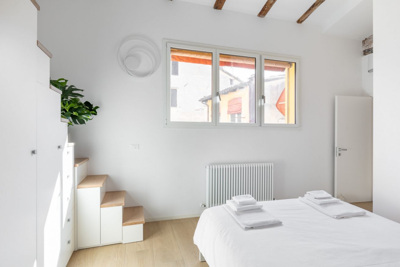 Luminosissima mansarda appena ristrutturata nel cuore del Quadrilatero, uno dei quartieri piu' caratteristci di Bologna. Terzo piano senza ascensore, a solo 2 minuti a piedi dalle Due Torri e da Piazza Maggiore. La casa dispone di una camera da letto matrimoniale, una singola, soggiorno/pranzo con divano letto per due persone e cucina attrezzata di tutti gli utensili ed elettrodomestici per poter cucinare. Un fantastico punto di partenza per visitare le maggiori attrazioni della citta'! A/C-Wifi