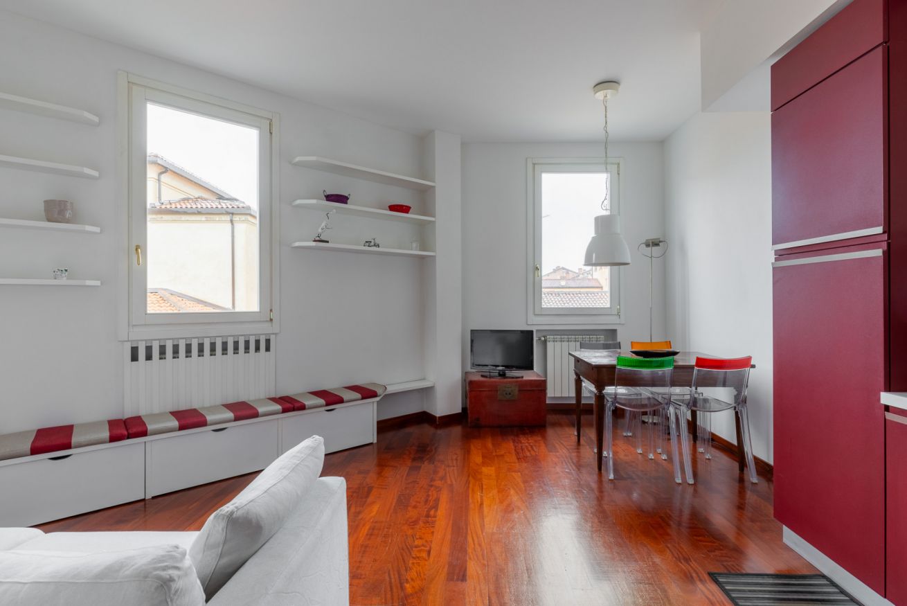 Delizioso appartamento nel cuore di Bologna in una zona del centro residenziale ed elegante. A due passi da tutte le maggiori attrazioni della citta', dietro al caratteristico mercato delle Erbe. Terzo piano con ascensore, camera da letto matrimoniale, bagno con doccia e salotto con cucina. E' una posizione strategica per poter visitare la citta' e dintorni, si trova a soli 15 minuti a piedi dalla stazione centrale. Wifi, riscaldamento e aria condizionata nel corridoio.