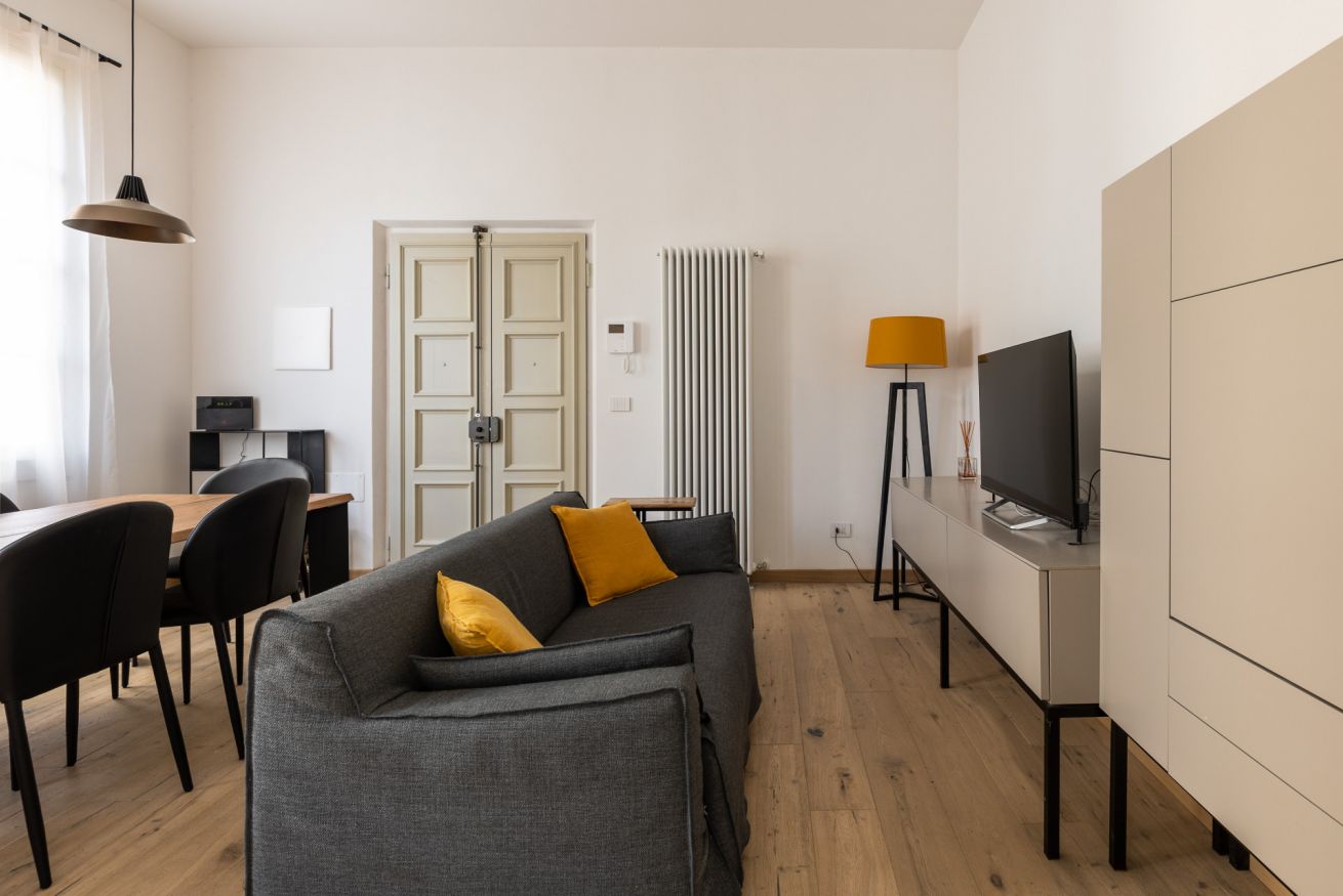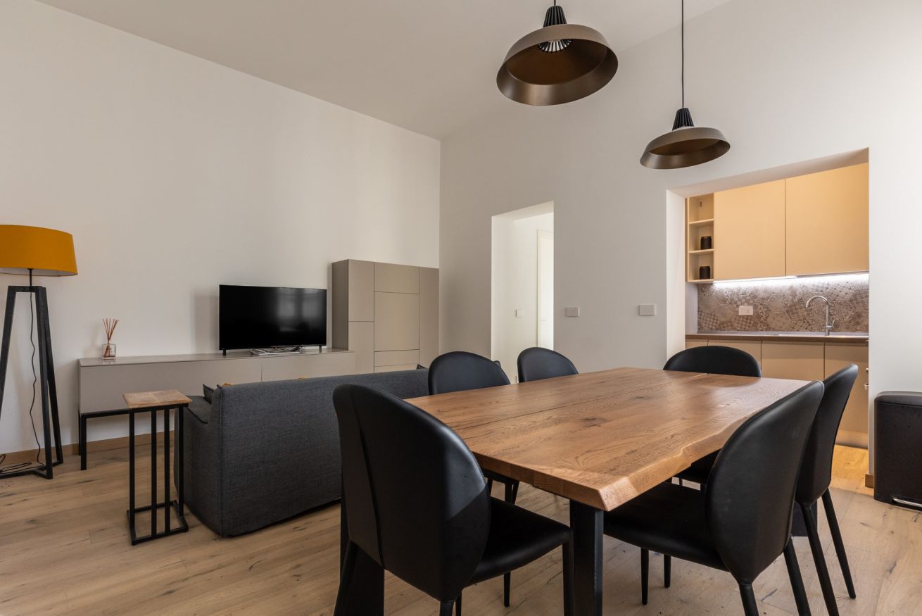 Nuovo e silenziosissimo appartamento arredato con gusto nel cuore del centro storico. Composto da zona soggiorno con divano, tavolo da pranzo e cucina attrezzata, zona notte con camera da letto e bagno ensuite. Seconda camera con divano letto e area lavoro. Un ulteriore bagno con doccia nel corridoio. Dotato di ogni comfort, aria condizionata, riscaldamento centralizzato, wifi e smart tv. Un appoggio strategico nel cuore di Bologna per visitare comodamente le maggiori attrazioni della città.