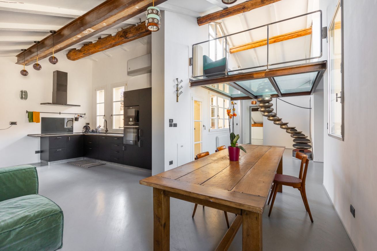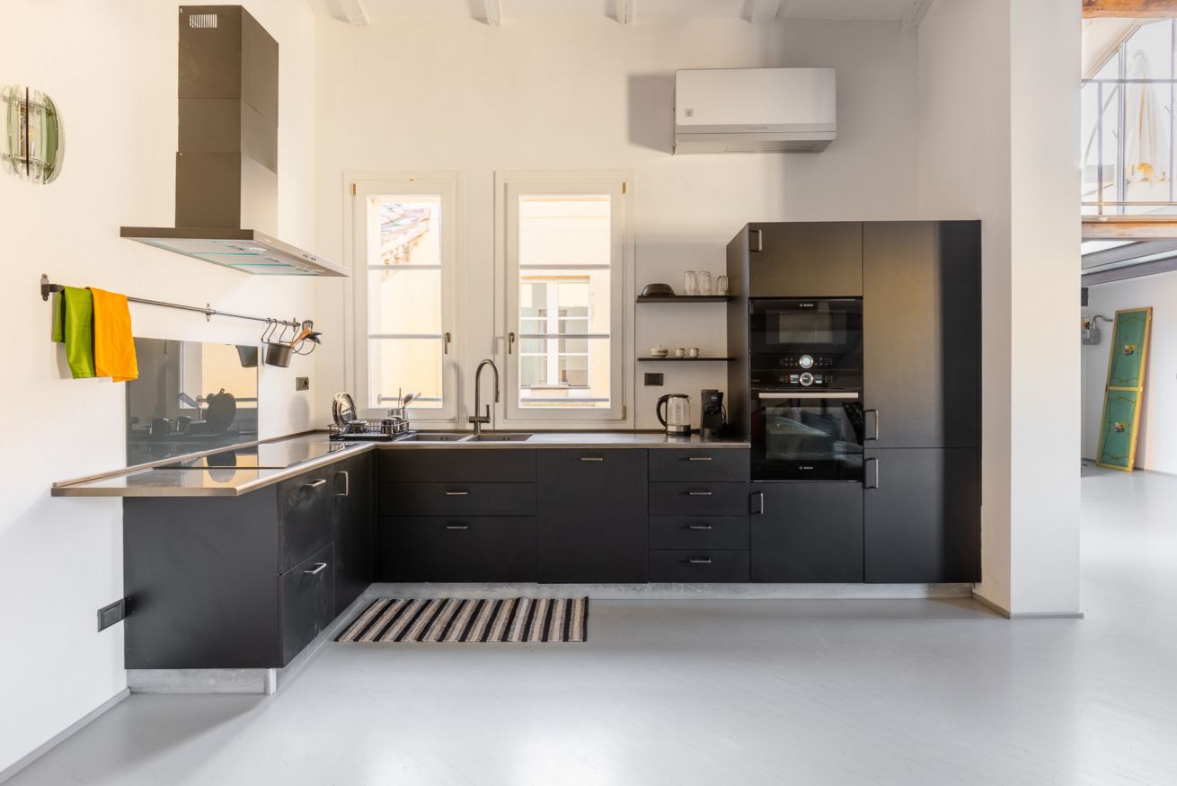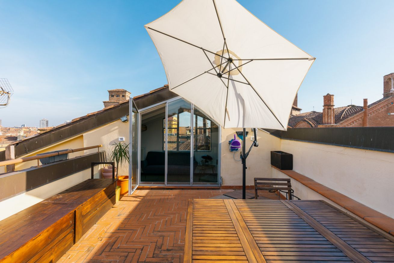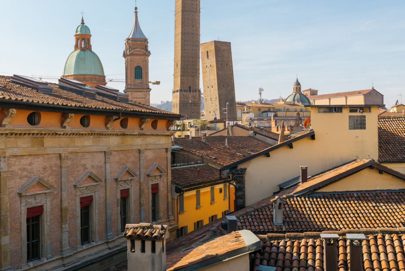 Appartamento di Design all'interno di una palazzo del 1300, posto al quarto piano senza ascensore con spettacolare terrazza con vista su tutta Bologna. A due minuti a piedi dalle due torri e nel cuore della zona universitaria. Si sviluppa su due livelli, entrata su soggiorno e cucina a vista, due camere da letto matrimoniali, camera con letto singolo e due bagni. Una scala di design porta al piano superiore: zona lettura e la meravigliosa terrazza. Ottima posizione per visitare la citta'.